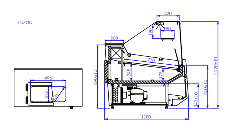 LUZON to linia lad chłodniczych przystosowana do zasilana zarówno agregatem wewnętrznym oraz z możliwością podłączenia do agregatu zewnętrznego. Linia LUZON dedykowana jest dla małych, średnich oraz dużych sklepów i powierzchni sprzedażowych. Urządzenie posiada system podnoszonych szyb uchylnych. Urządzenie posiada komory przechowalnicze. Występuje w długościach: 0.94, 1.25, 1.56, 1.88, 2.5, 3,13 i 3.75 metra. Oferowana jest w wersji z prostą szybą frontową. Klient ma możliwość wyboru systemu chłodzenia w jaki wyposażona zostanie lada chłodnicza. Dystrybucja chłodu  może odbywać się w dwóch wariantach: Statycznie ( grawitacyjnie ) oraz dynamicznie, czyli obieg powietrza zostanie wymuszony przez wentylatory.